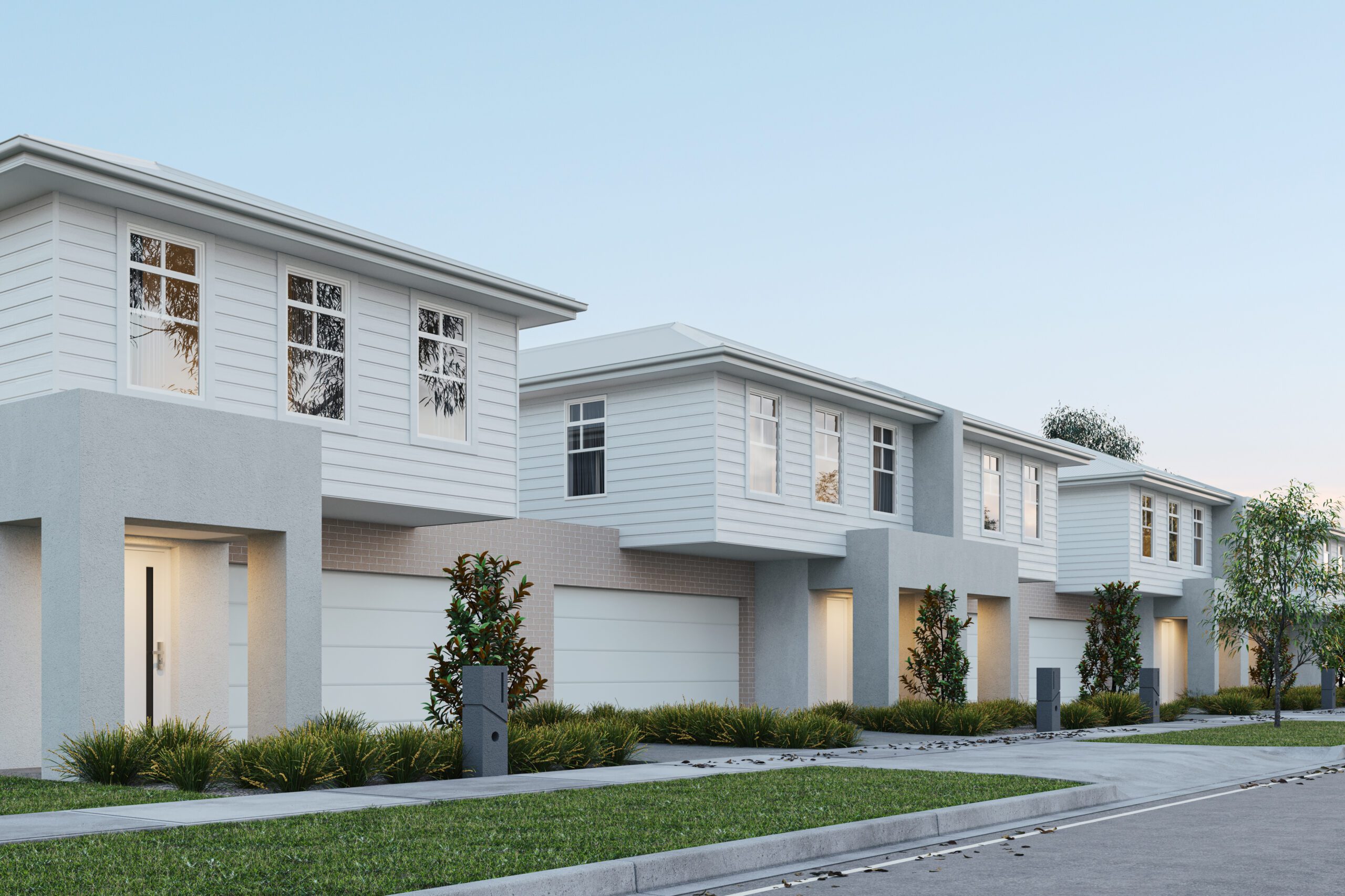 Light-filled, modern townhomes opposite the future Grand Linear Reserve.